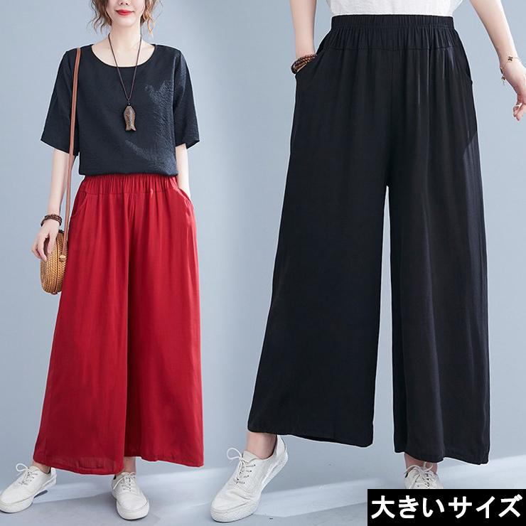 大きい サイズ レディース ワイド パンツ 196667-黒 ワイドパンツ コーデ レ ディース